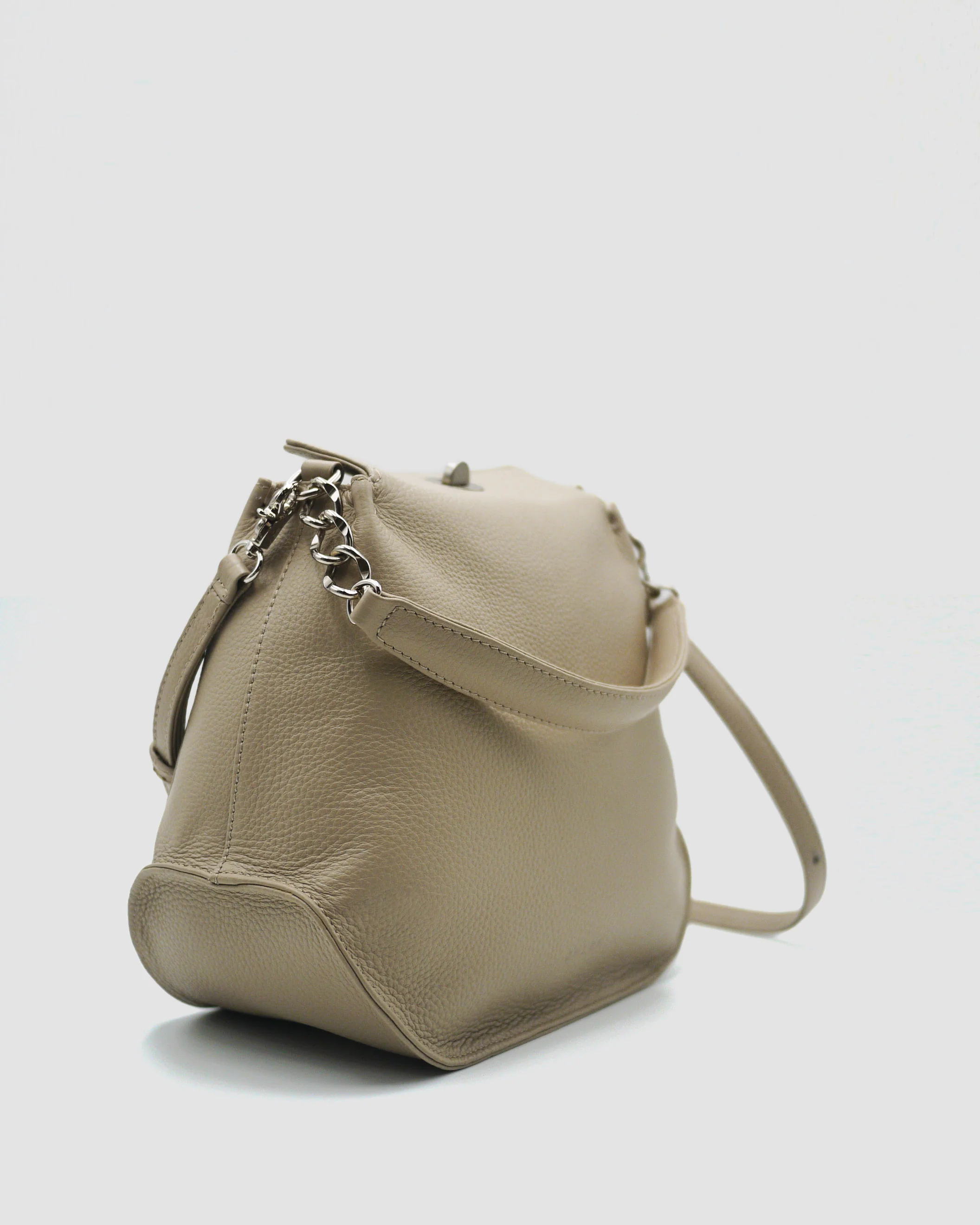 Inspired by the elegant shape of a pear, this handbag features a streamlined silhouette with a unique side and bottom gusset, offering a refreshing, timeless style perfect for any occasion. The flap top, secured by a logo-engraved turn lock, opens to a spacious interior with a convenient pocket for small essentials. A card slot on the back exterior easily fits transit passes from most countries. Carry it by the cushioned handle, or wear it over the shoulder with the optional strap.